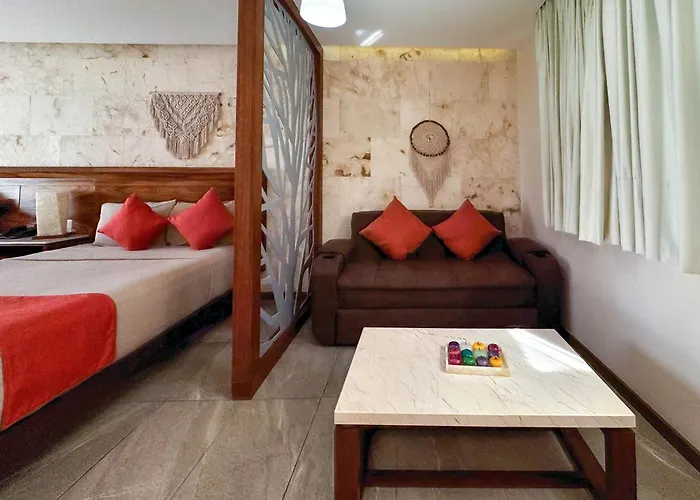 Disfruta de tus vacaciones en Playa del Carmen en el 50 Suites Double Queen Playa del Carmen. Ideal para quienes buscan una experiencia auténtica, está situado a poco más de 10 minutos en coche del Parque Los Fundadores y a unos 1 km de la Iglesia de Guadalupe. Este apartamento de 50 m², situado muy cerca del club Martina Beach Club, ofrece una terraza con vistas a la piscina.
